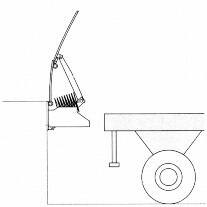 Le camion recule et s’arrête dès qu’il accoste contre le quai. Il recule et s’arrête dès qu’il accoste contre le quai. Les opérations de chargement ou déchargement peuvent être effectuées. Le véhicule peut être plus bas ou bien plus haut que le quai. Le pont articulé peut être retiré avant le départ du véhicule.
