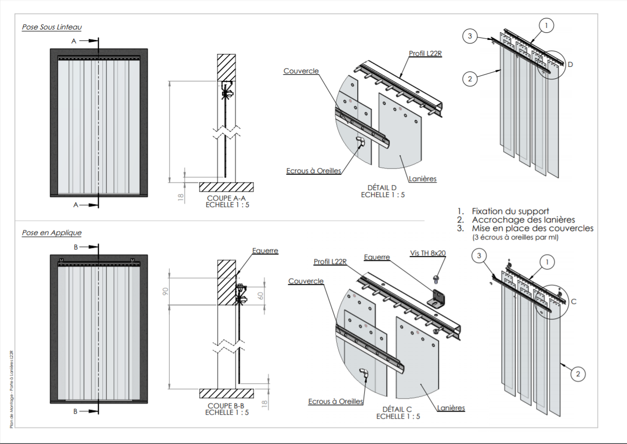Fixation en applique sur le linteau / Fixation sous linteau (Réduction de la hauteur du passage utile existante)